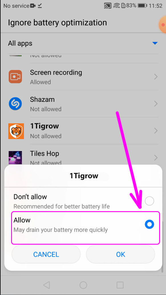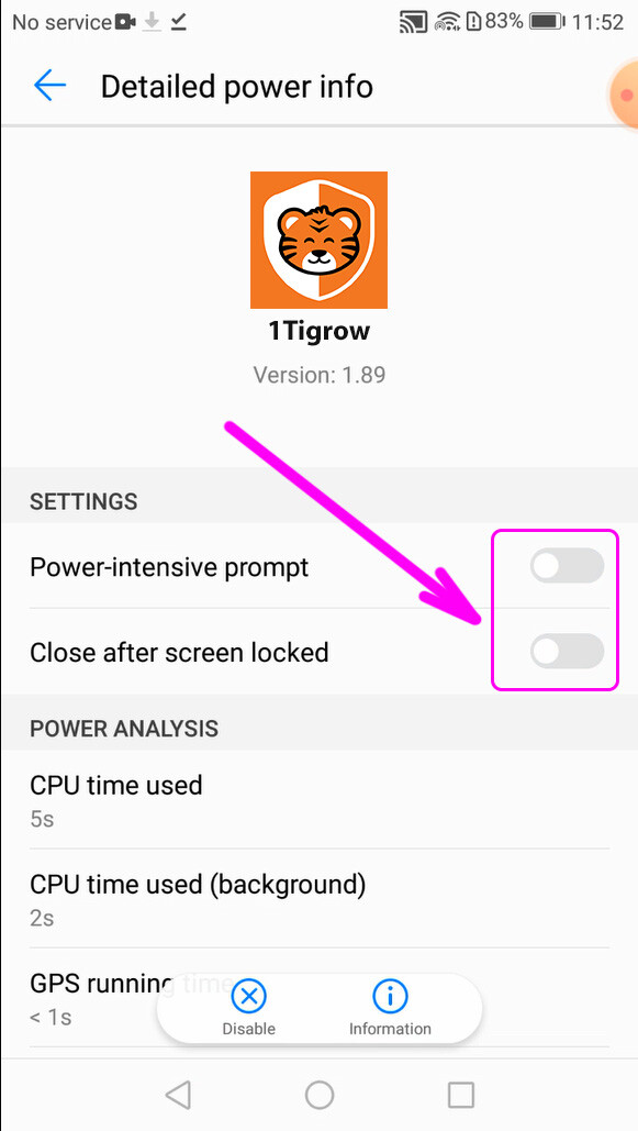 If your child has a Huawei smartphone with Android version 8 or more, then for the Tigrow application to work properly, you need to make some settings.
